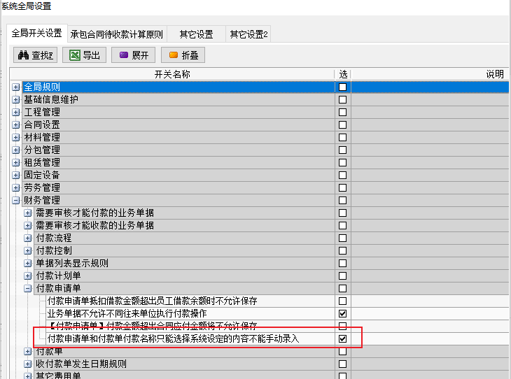 3、付款申請(qǐng)單和付款單付款名稱(chēng)只能選擇系統(tǒng)設(shè)定的內(nèi)容不能手動(dòng)錄入”